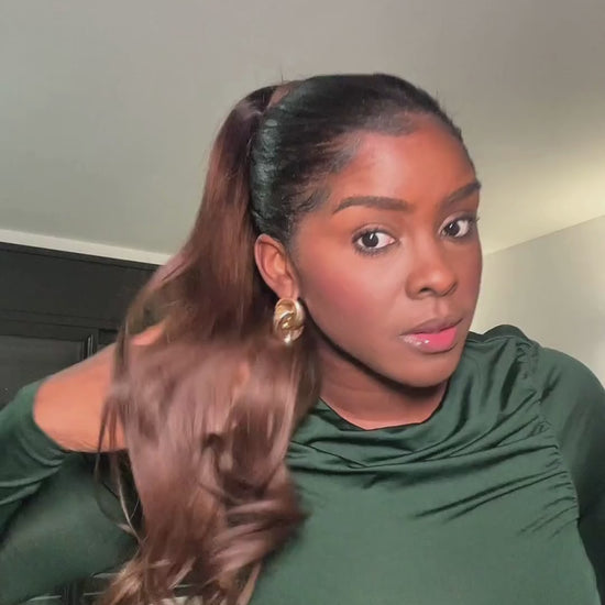 Tayra es la coleta ideal para mujeres que quieren darle vida a su melena con un efecto balayage natural, sin dañar el cabello ni pasar por la peluquería. Hecha con cabello 100% natural, combina un tono castaño oscuro con reflejos caramelo que se funde perfectamente con bases oscuras.